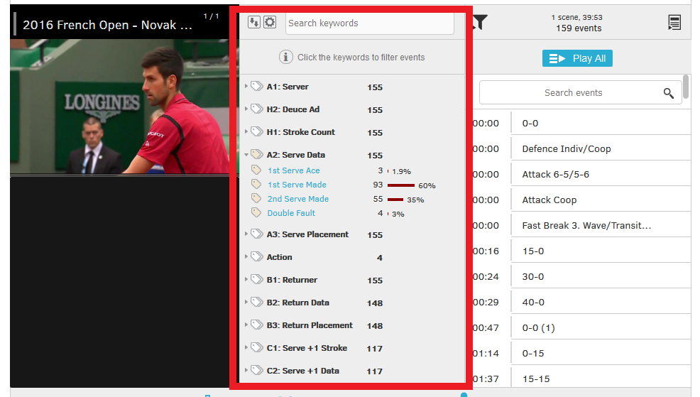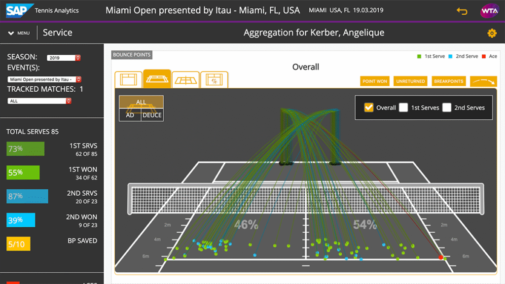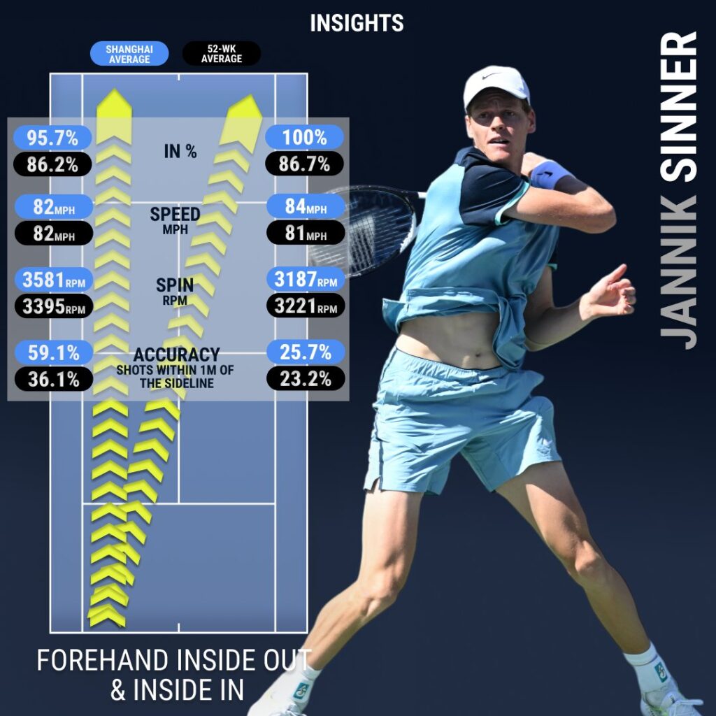 اعتمد على تحليل بيانات Hawk-Eye لاكتشاف أن ضرب الإرسال إلى الزاوية الخارجية يعطيه نقاطًا أكثر ضد لاعبين طوال القامة. فعدّل نمط الإرسال خصيصًا ضدهم.
